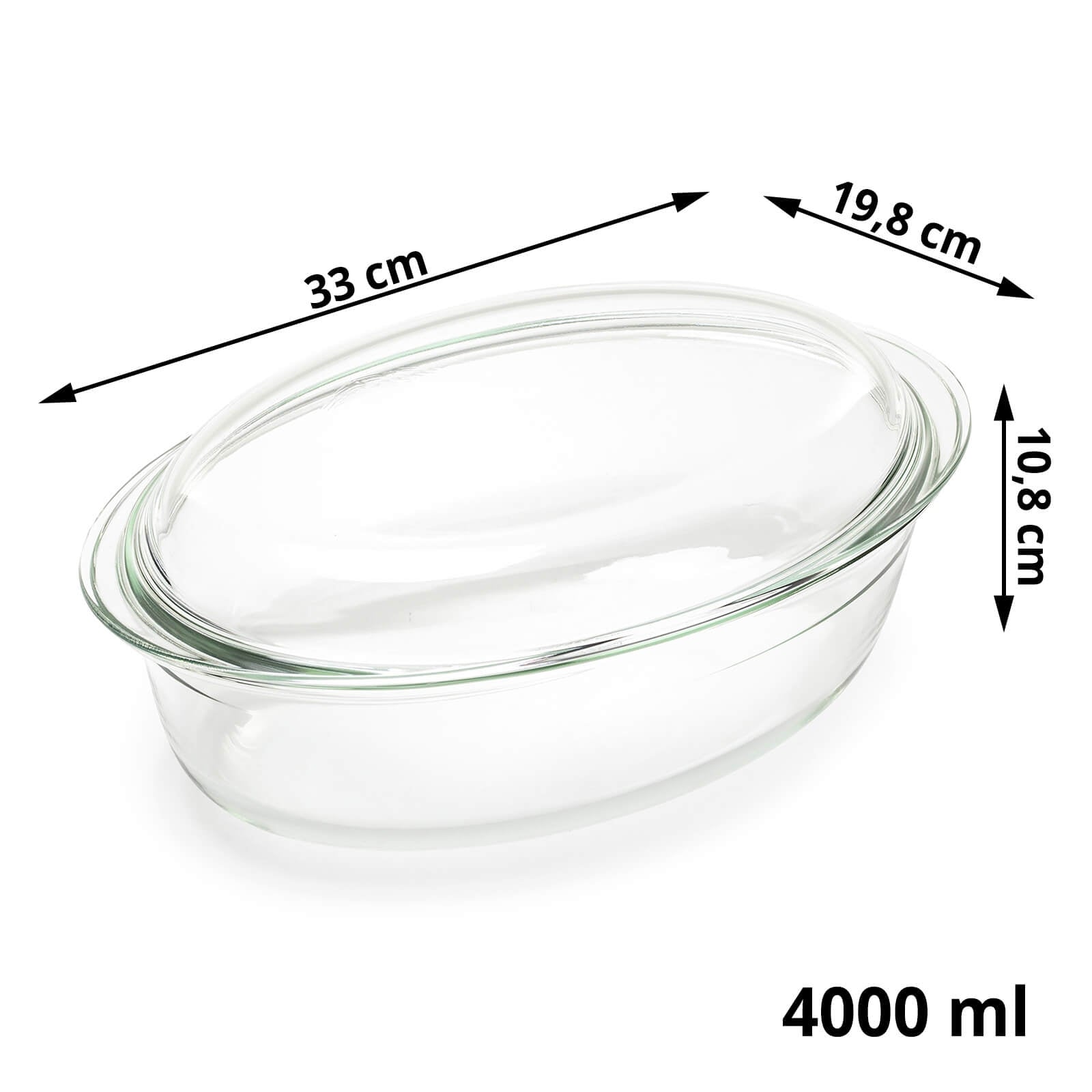 - Oválný skleněný pekáč s víkem, objem 4000 ml.