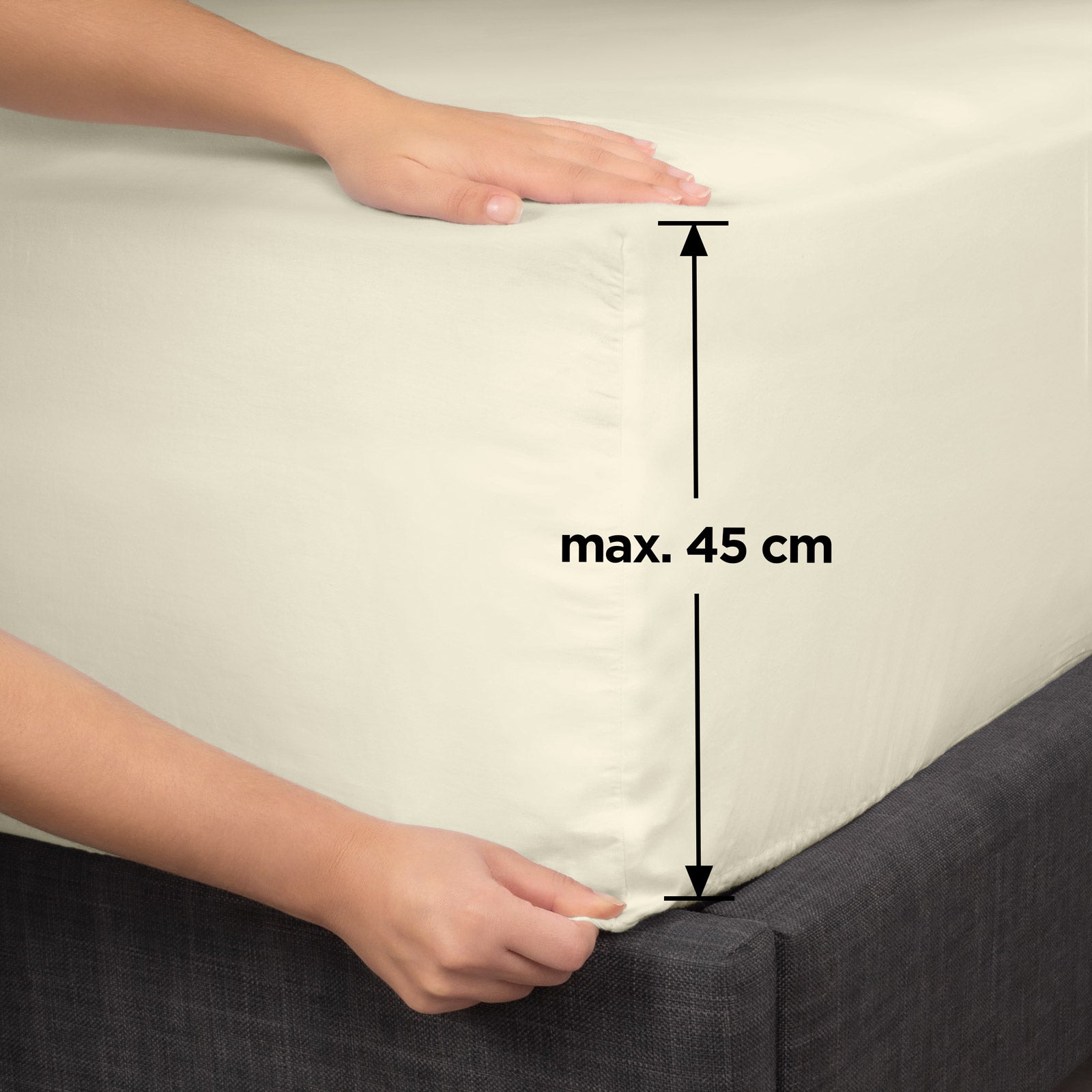 Naše prostěradlo XXL se snadno přizpůsobí nejvyšším matracím, takže se konečně vyhnete jeho posunu a sklouzávání z okrajů. Hodí se na všechny matrace vysoké až 45 cm, takže si můžete dopřát ještě bezstarostnější noci.