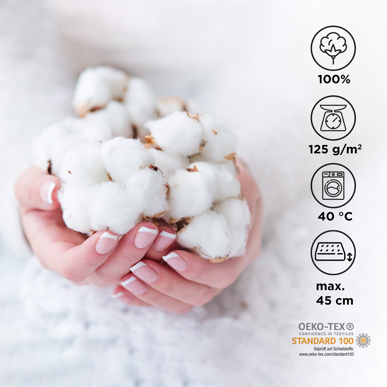 - Vyrobeno ze 100% bavlněného saténu pro jemný dotek na pokožce.