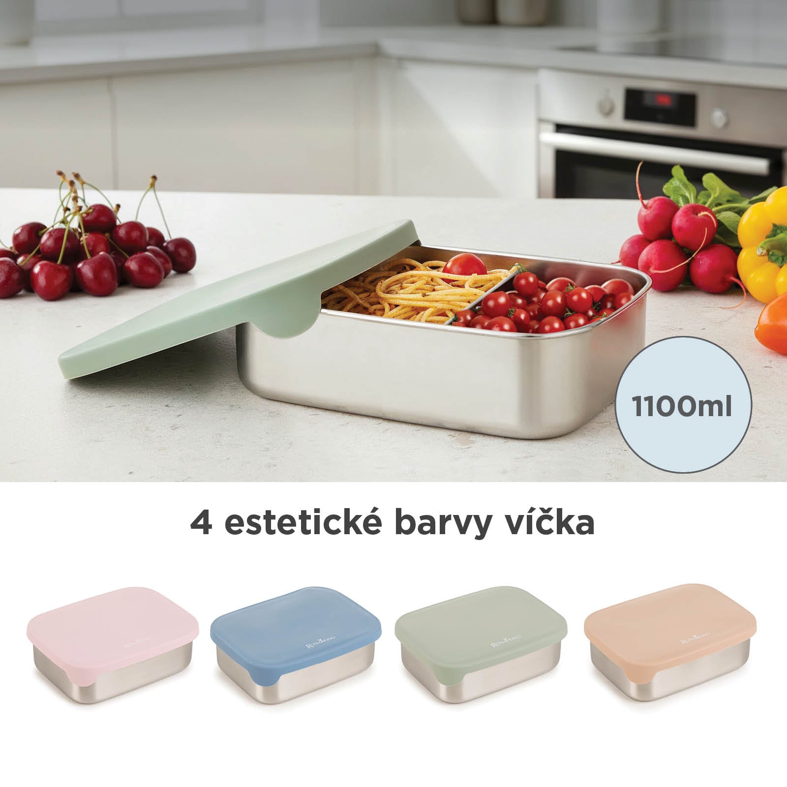 Box z nerezové oceli lze mýt v myčce při teplotě do 60 °C. Silikonové víko doporučujeme mýt ručně. Nepoužívejte v mikrovlnné troubě.