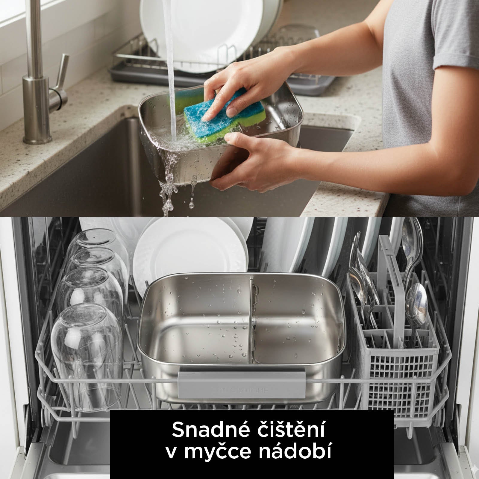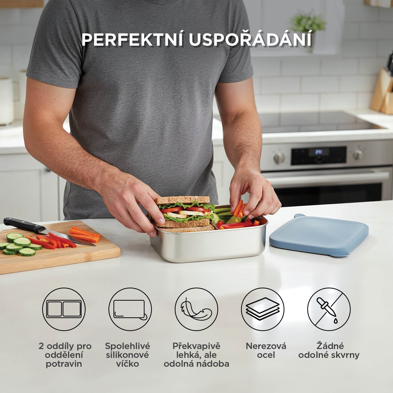 - Ranní klid místo shonu – 2 přihrádky oddělují hlavní jídlo a přílohu.