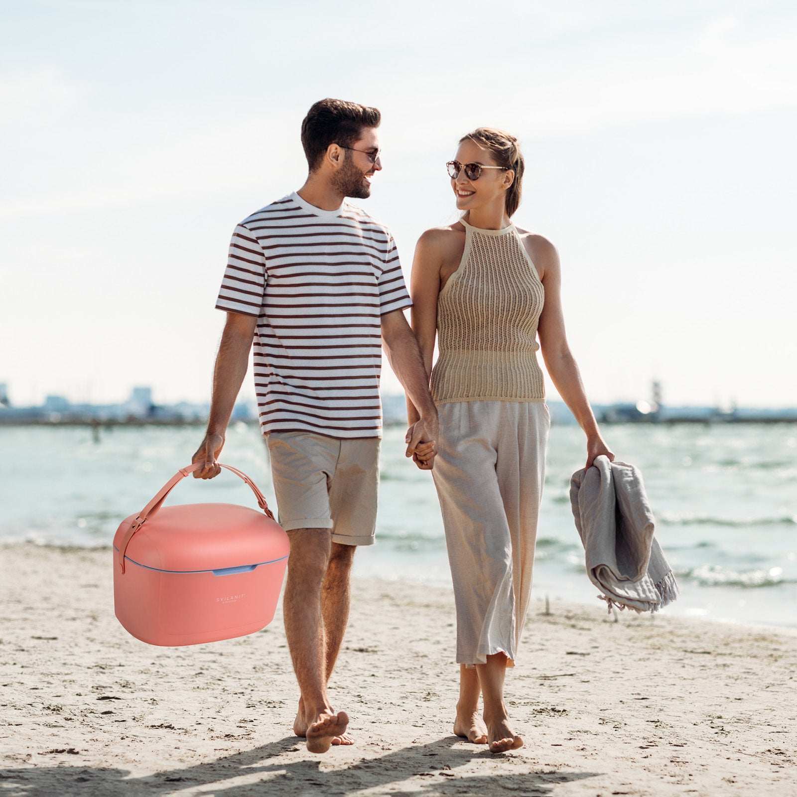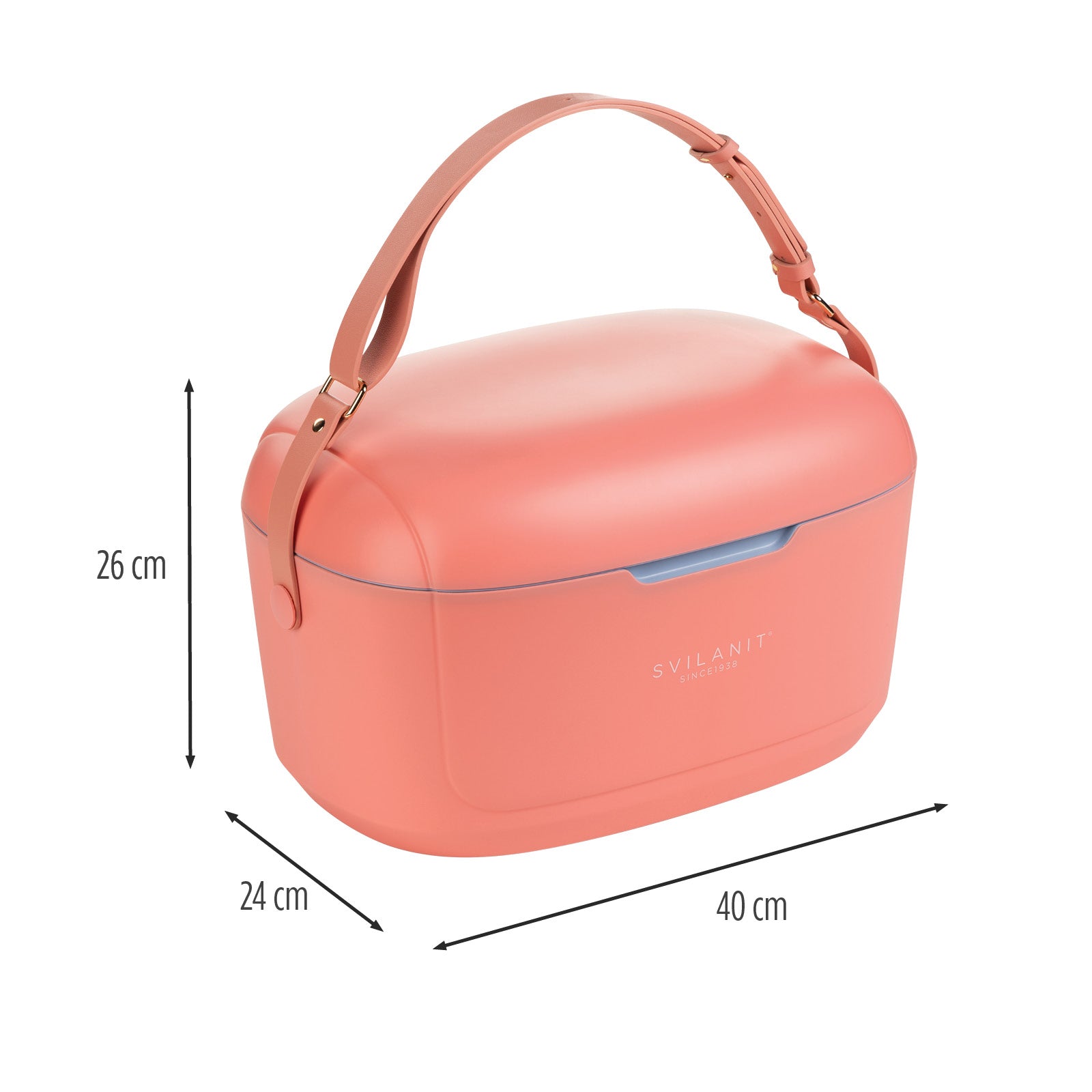 Zapomeňte na měkké chladicí tašky, které se snadno převrhnou, a na nevzhledné chladicí tašky, které schováte pod ručník! Elegantní a odolná chladicí taška Svilanit je vaším nepostradatelným společníkem v teplých dnech. Ať už se chystáte na rodinný piknik, romantický výlet k moři, nebo prostě potřebujete spolehlivé každodenní chlazení, tento praktický box zajistí, že vaše nápoje zůstanou ledově chladné a potraviny čerstvé po celé hodiny. Dvě přiložené vložky na led poskytují ještě delší a intenzivnější chlazení. Box je k dispozici ve 2 velikostech a 2 krásných letních barvách, bude na co být hrdý a díky nastavitelnému a pohodlnému popruhu přes rameno se snadno přenáší.