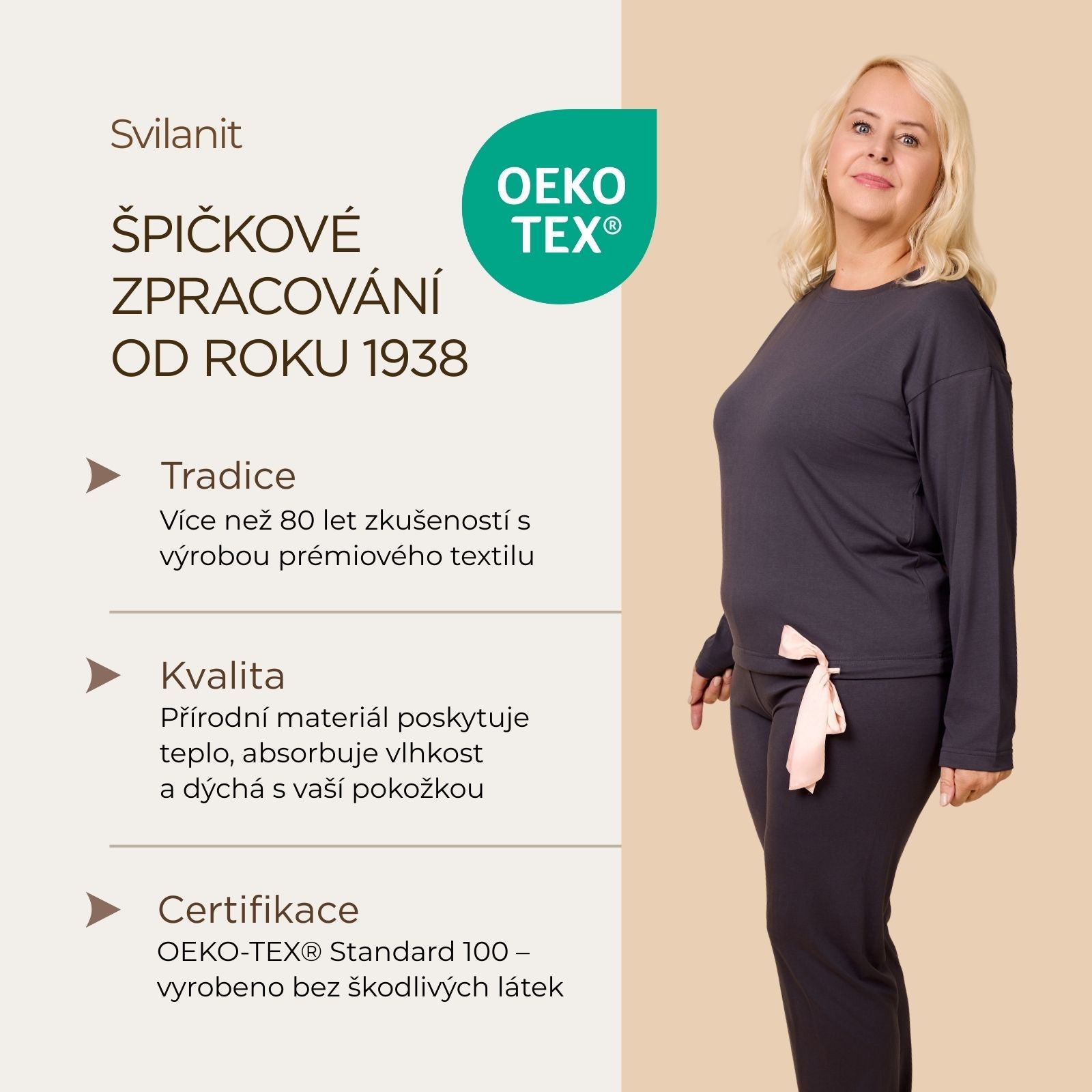 - Nejvyšší certifikát OEKO-TEX® Standard 100 – vyrobeno bez škodlivých látek, šetrné k pokožce