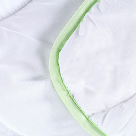 Tkanina přikrývky je obohacena o aloe vera, které je známé svými více než 200 blahodárnými složkami. Kromě antibakteriálních a antistresových účinků její aminokyseliny účinně zklidňují pokožku náchylnou k alergiím a dodávají pocit hebkosti.