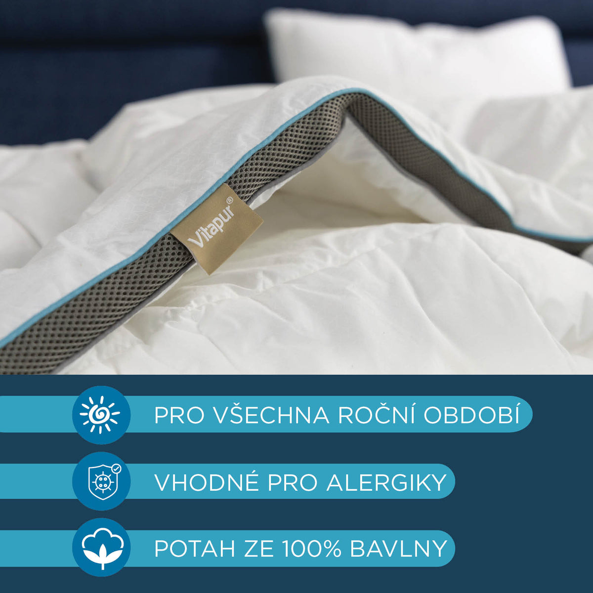 - Oboustranná celoroční přikrývka z prvotřídních materiálů pro dokonalý spánek v každém ročním období.