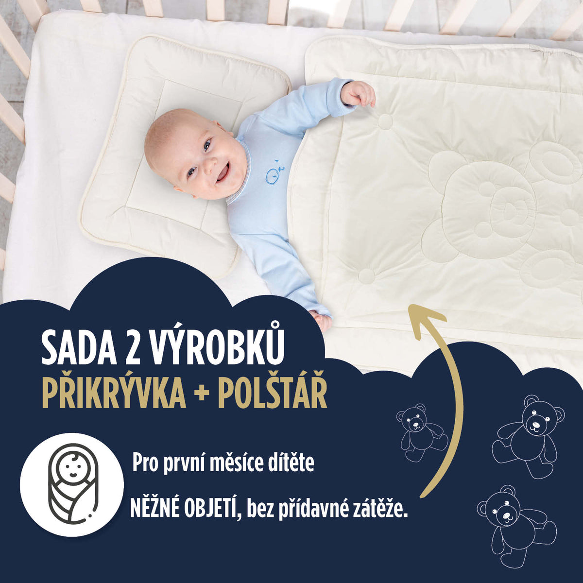 - Seznamte se s dokonalou soupravou na spaní pro sladký spánek miminka. Dvoudílná sada obsahuje dětský polštářek a měkkou peřinku.