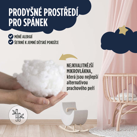 - Bambusová vlákna vytvářejí suché a svěží prostředí pro spánek, protože dokonale absorbují přebytečnou vlhkost. Vhodný také pro všechny děti, které se během spánku častěji potí.