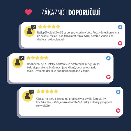 - Díky své výšce a tvaru nabízí polštář dokonalou oporu pro hlavičku vašeho miminka, je nízký a měkký a pomáhá vašemu miminku klidněji spát.