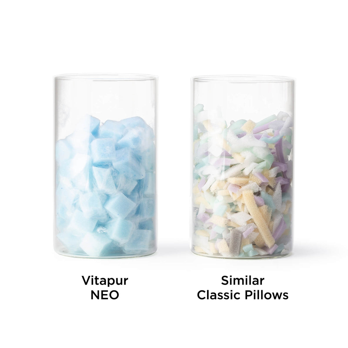 Inovativní kombinace kostek z paměťové pěny a nejjemnějších mikrovláken ClimaSoft dohromady poskytuje vynikající oporu krku. Paměťová pěna má výborné přizpůsobovací vlastnosti a reaguje na působící tlak. Kostky z paměťové pěny zajišťují rovnoměrné rozložení tlaku a správnou oporu hlavy během spánku, zatímco jemná mikrovlákna vám dodají extra pocit měkkosti. Paměťová pěna je řezána výhradně pro polštář NEO, protože pouze správný tvar a velikost kostek mu dodává odpovídající funkčnost tak, abyste se mohli ráno probouzet s pocitem spokojenosti a odpočinku.