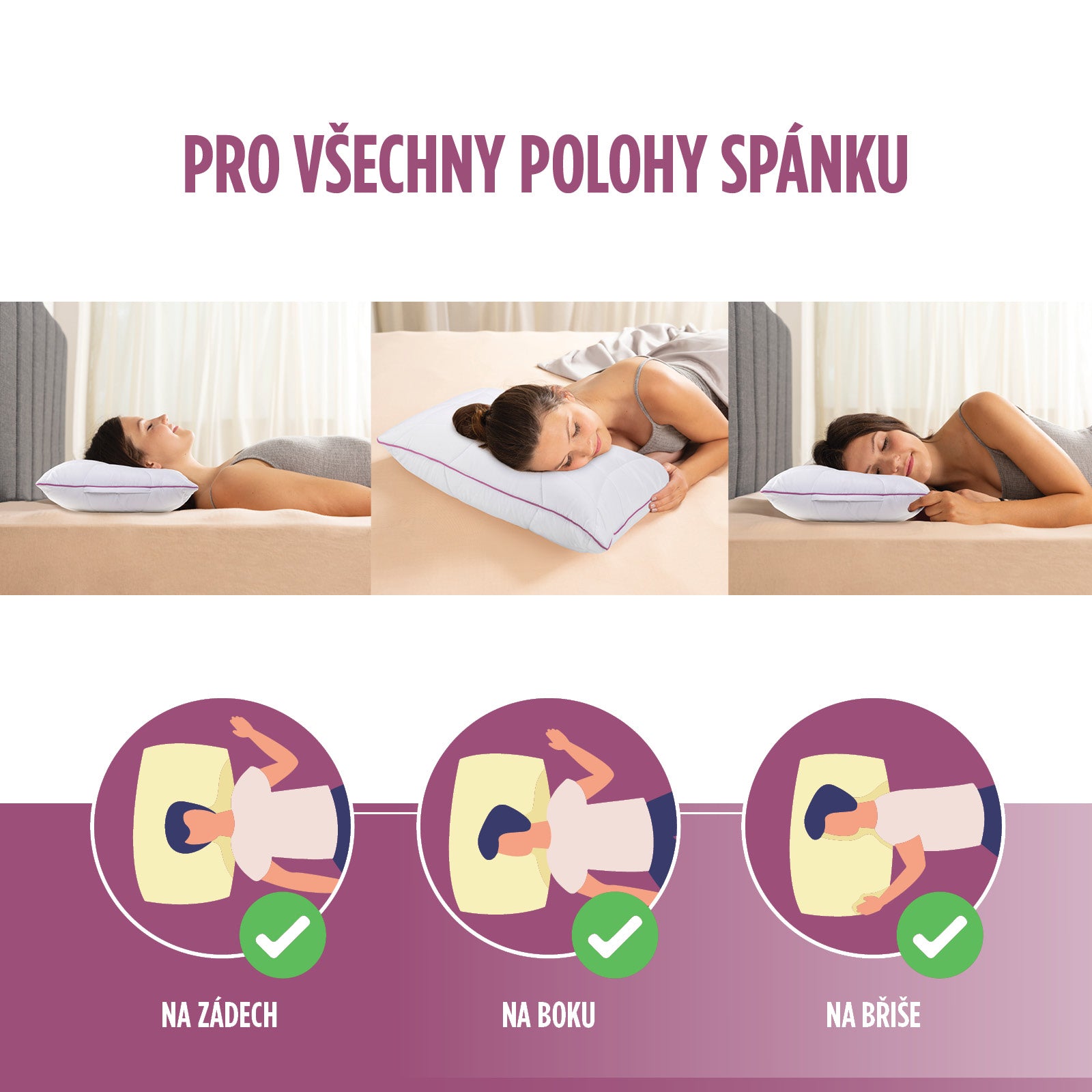 Univerzální polštář pro všechny polohy při spánku.