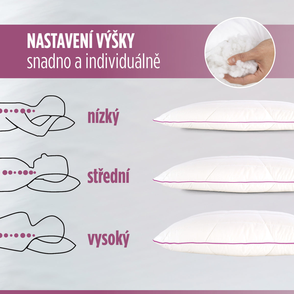 Nastavte si výšku polštáře podle svých preferencí.