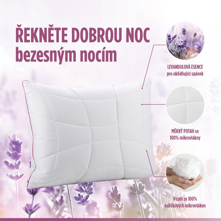 - Tento polštář s uklidňující levandulovou vůní zlepšuje kvalitu spánku a je vhodný pro všechny, kteří trpí nespavostí a únavou.
