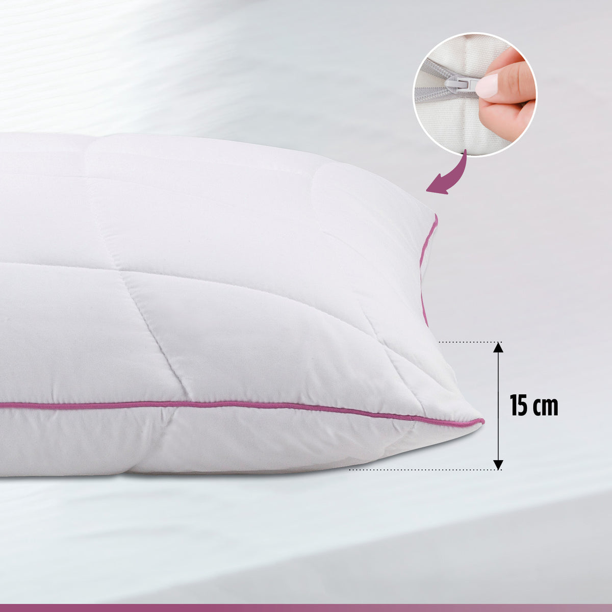 - Výšku polštáře si můžete nastavit podle svých preferencí a polohy při spánku.