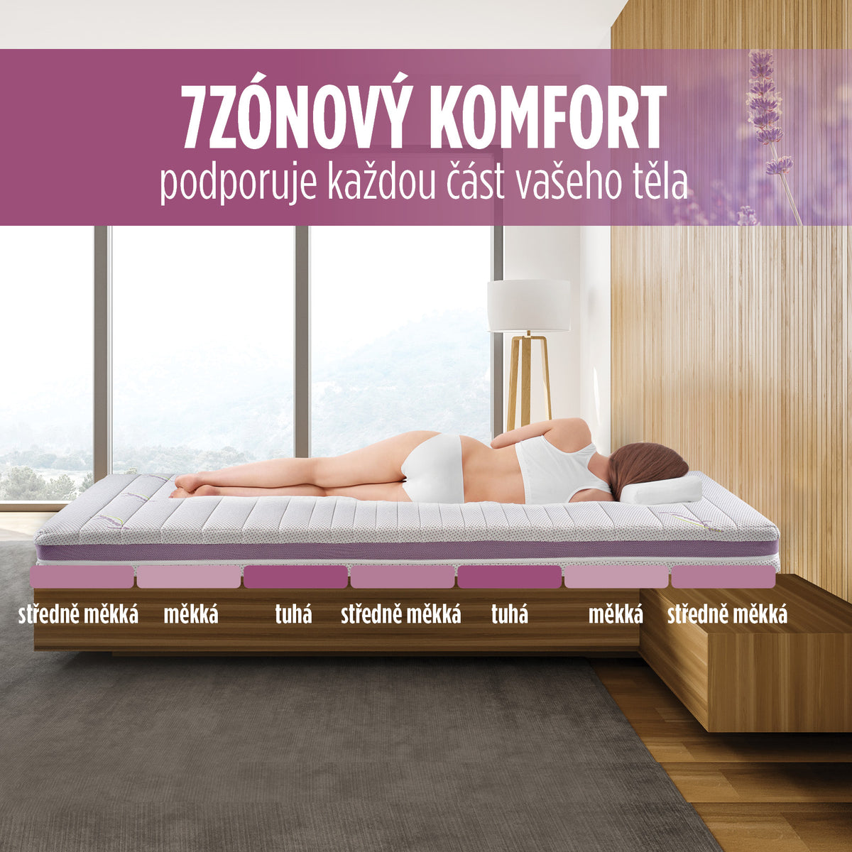 - Sedmizónová pěnová matrace, která se ergonomicky přizpůsobí vaší páteři pro co nejspokojenější spánek.