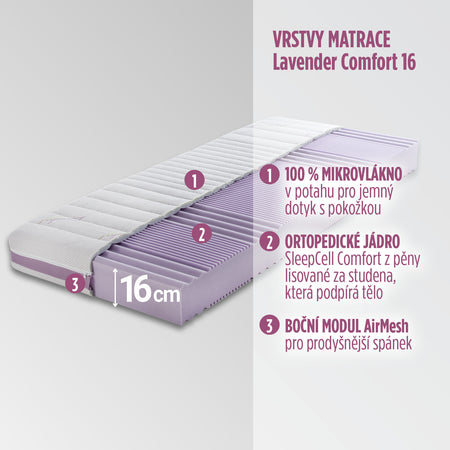 - Ležišče Lavender Comfort 16 je idealno za vsakogar, ki ima težo do 75 kg in se želi prebujati svež, spočit in poln energije.