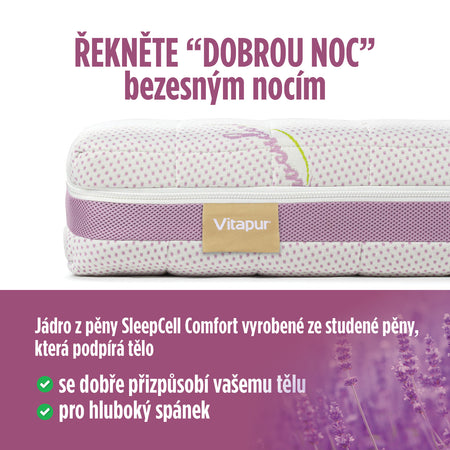 - Snímatelný a pratelný potah s levandulovou esencí.