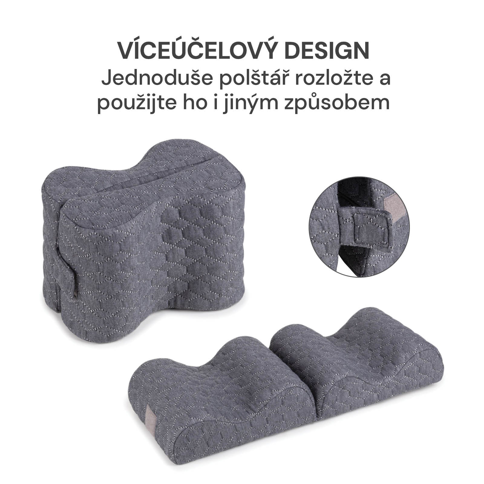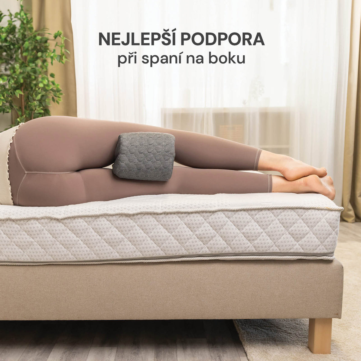 - Ergonomický tvar polštáře pro kolena pomáhá udržovat správné vyrovnání páteře a snižuje tlak na kolena, dolní část zad a boky.