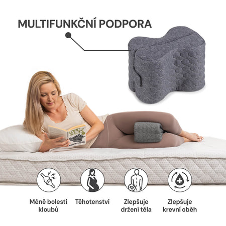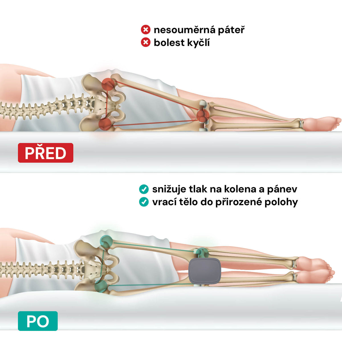 - Ergonomický polštář zmírňuje tlak na kolena a pánev a udržuje tělo v přirozené poloze.