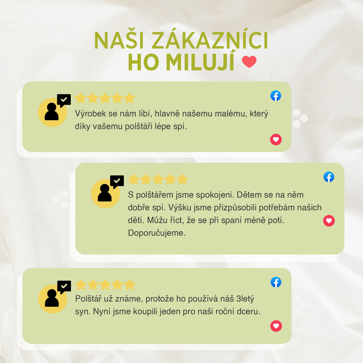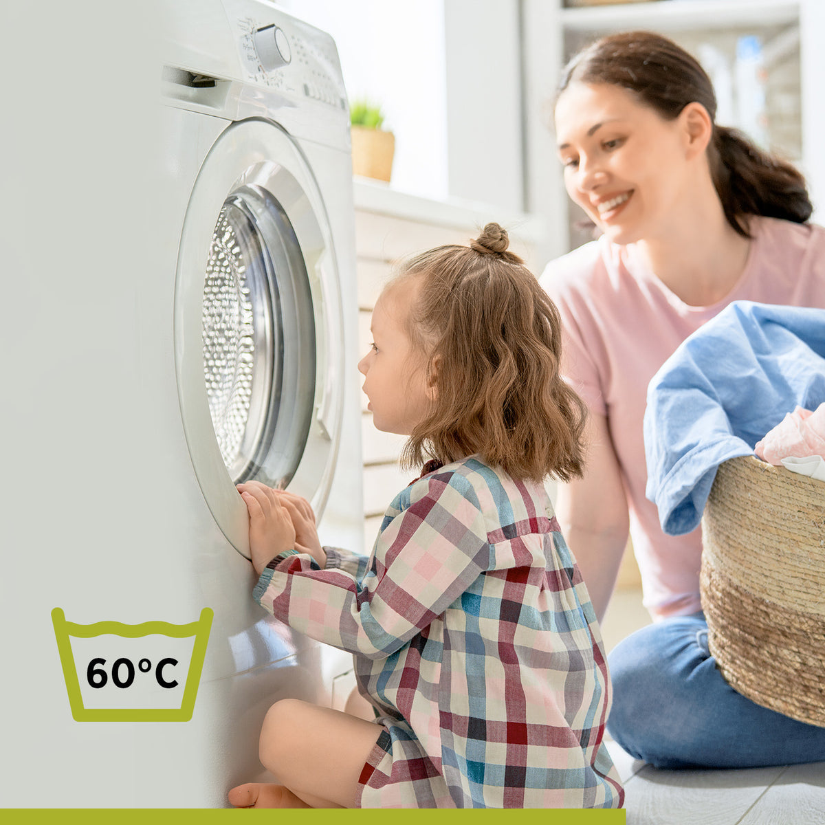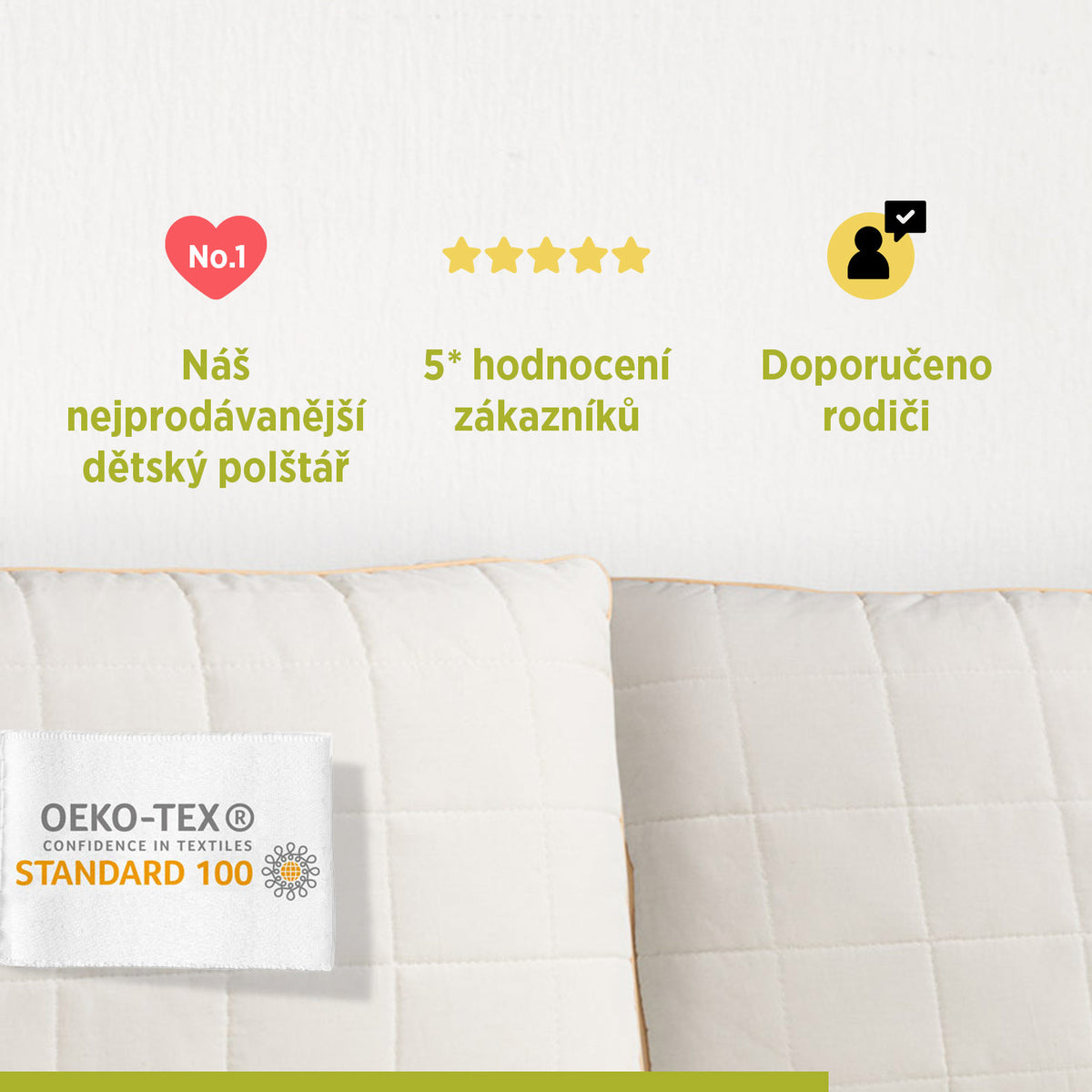 - Polštář lze prát na 60 °C, je tedy vhodný i pro všechny děti s citlivou a problematickou pokožkou, děti s alergiemi a astmatiky.