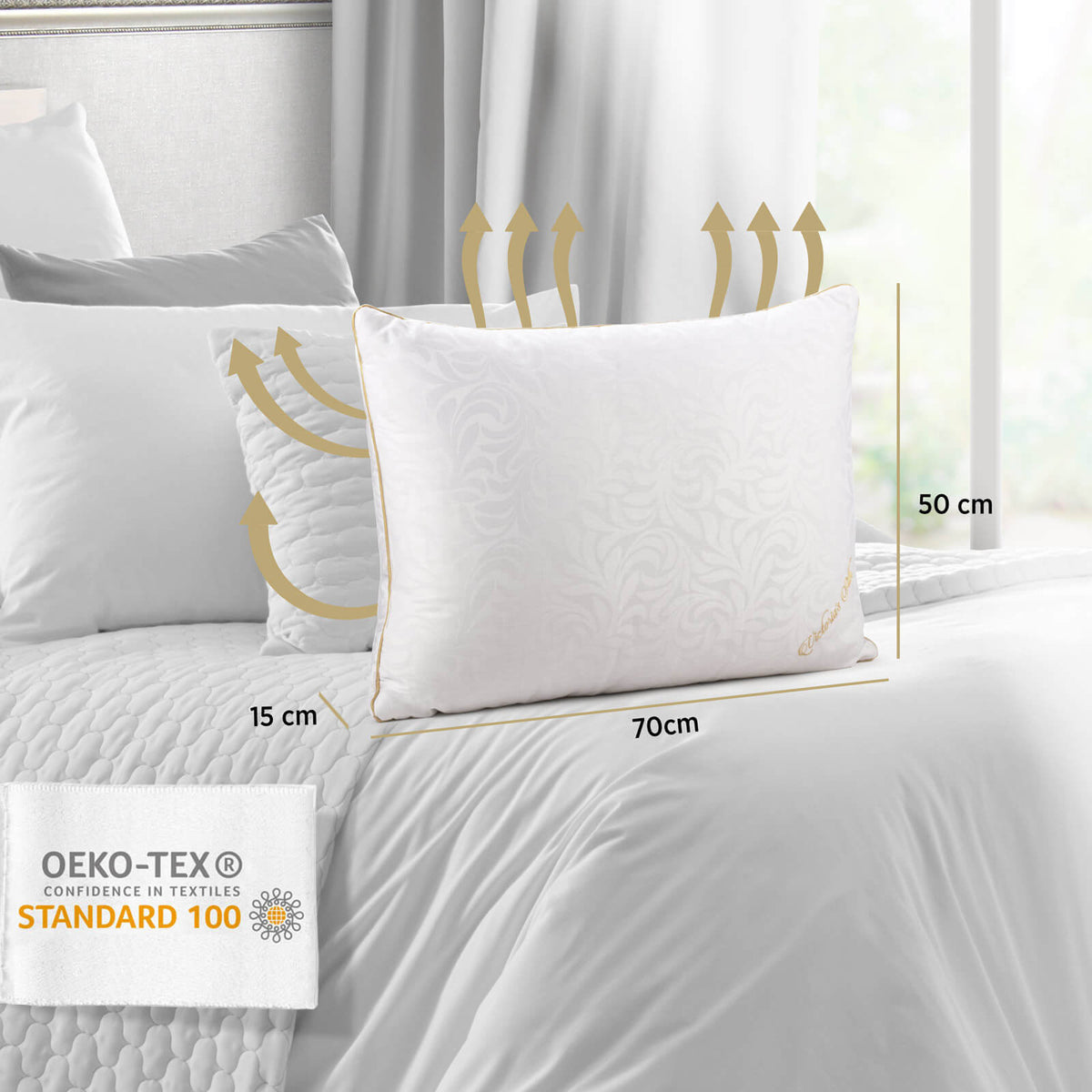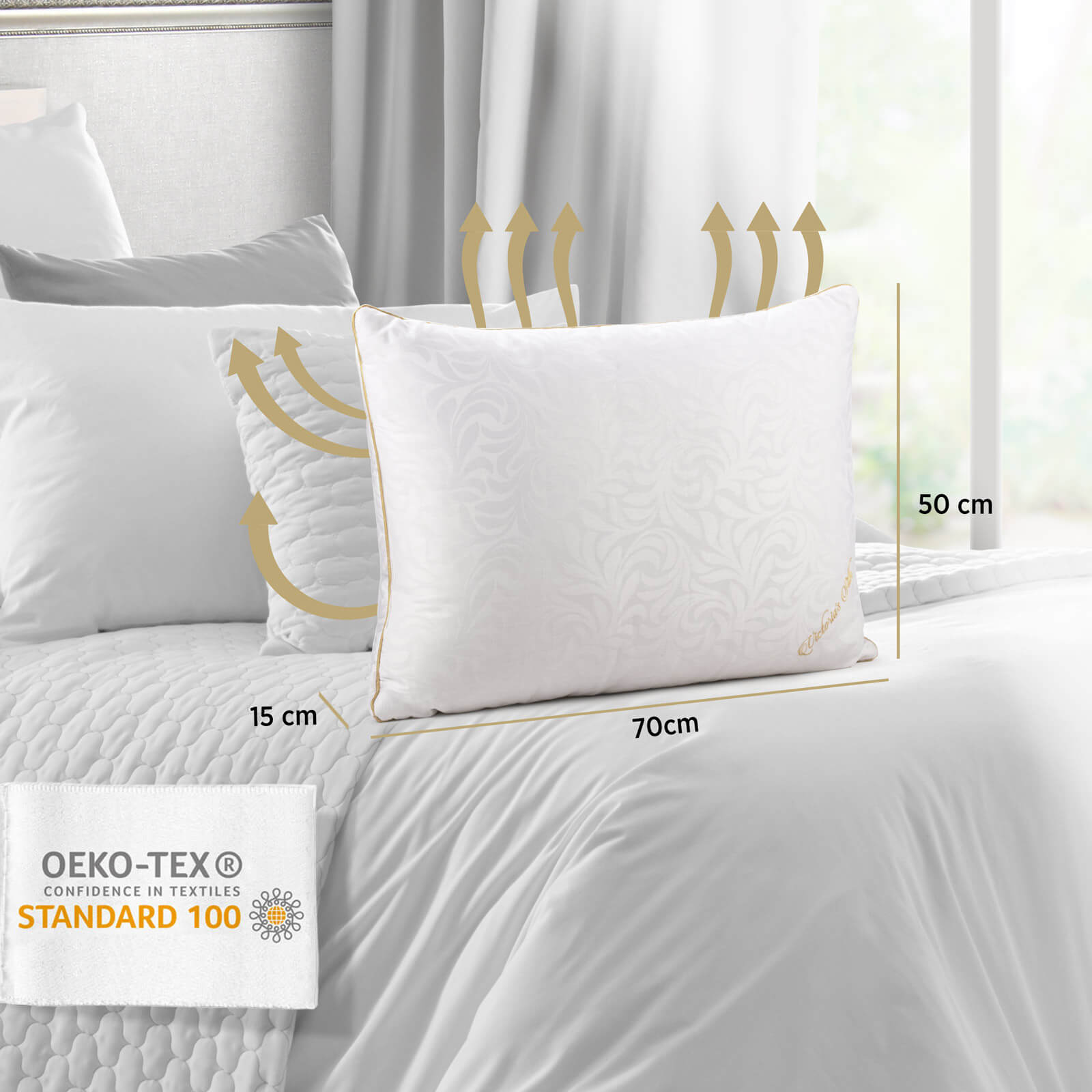 - Luxusní morušové hedvábí v polštářovém povlaku přináší potěšení každou noc, a to díky své vynikající regulaci teploty a skvělé prodyšnosti.