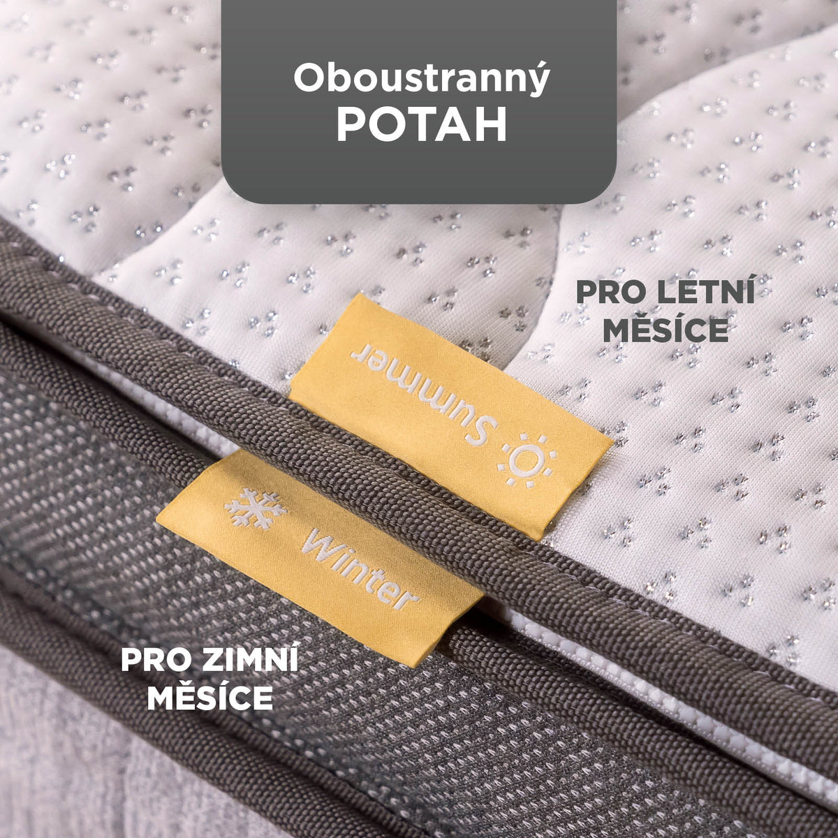 - Pro maximální pohodlí a suchý povrch na spaní otočte sezónní vrchní matraci na letní nebo zimní stranu.