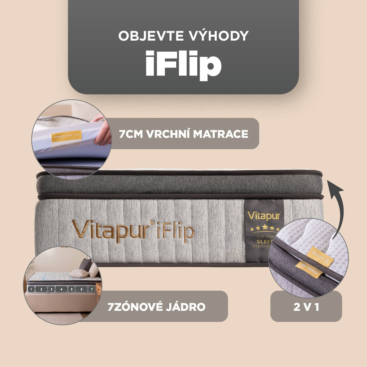Hybridní matrace Vitapur iFlip, 90x200 cm
