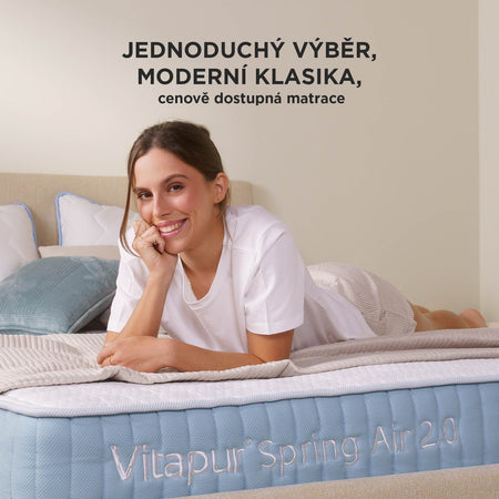 Zažijte tradiční pocit matrace Vitapur SpringAir 2.0, obohacený o moderní inovace. Systém taštičkových pružin nabízí klasickou, pružně reagující oporu, která se přizpůsobí vašemu tělu a poskytne přesně tolik pružnosti, kolik potřebujete. Tato matrace je ideální pro cenově uvědomělé zákazníky, protože přináší pohodlí bez kompromisů. Ať už pro rostoucí dítě, studentský pokoj nebo hostinský pokoj – matrace SpringAir 2.0 spojuje přizpůsobivost s nadčasovým komfortem. 7zónový podpůrný systém se přizpůsobí individuálním potřebám vašeho těla a ulevuje tlakovým bodům pro klidný spánek. Tři vrstvy komfortní pěny dodávají měkký dotek, zatímco prodyšný potah zajišťuje příjemně svěží prostředí ke spánku.
