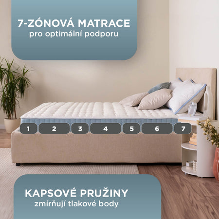 18 cm vysoké jádro matrace je rozděleno do 7 zón, které poskytují optimální podporu podél celé délky těla a ulevují tlakovým bodům. Vaše páteř zůstane během spánku správně vyrovnaná bez ohledu na polohu spánku.