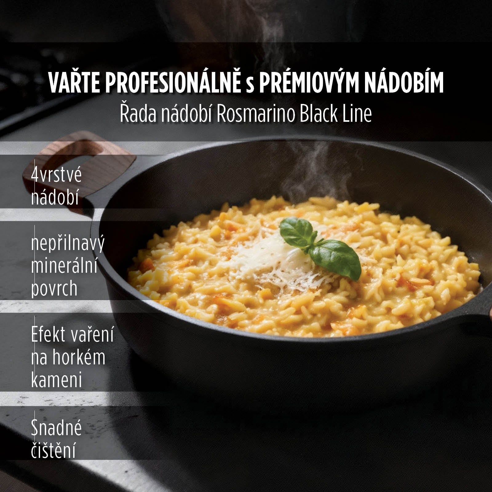 - 4vrstvé nádobí s nepřilnavým minerálním povrchem.