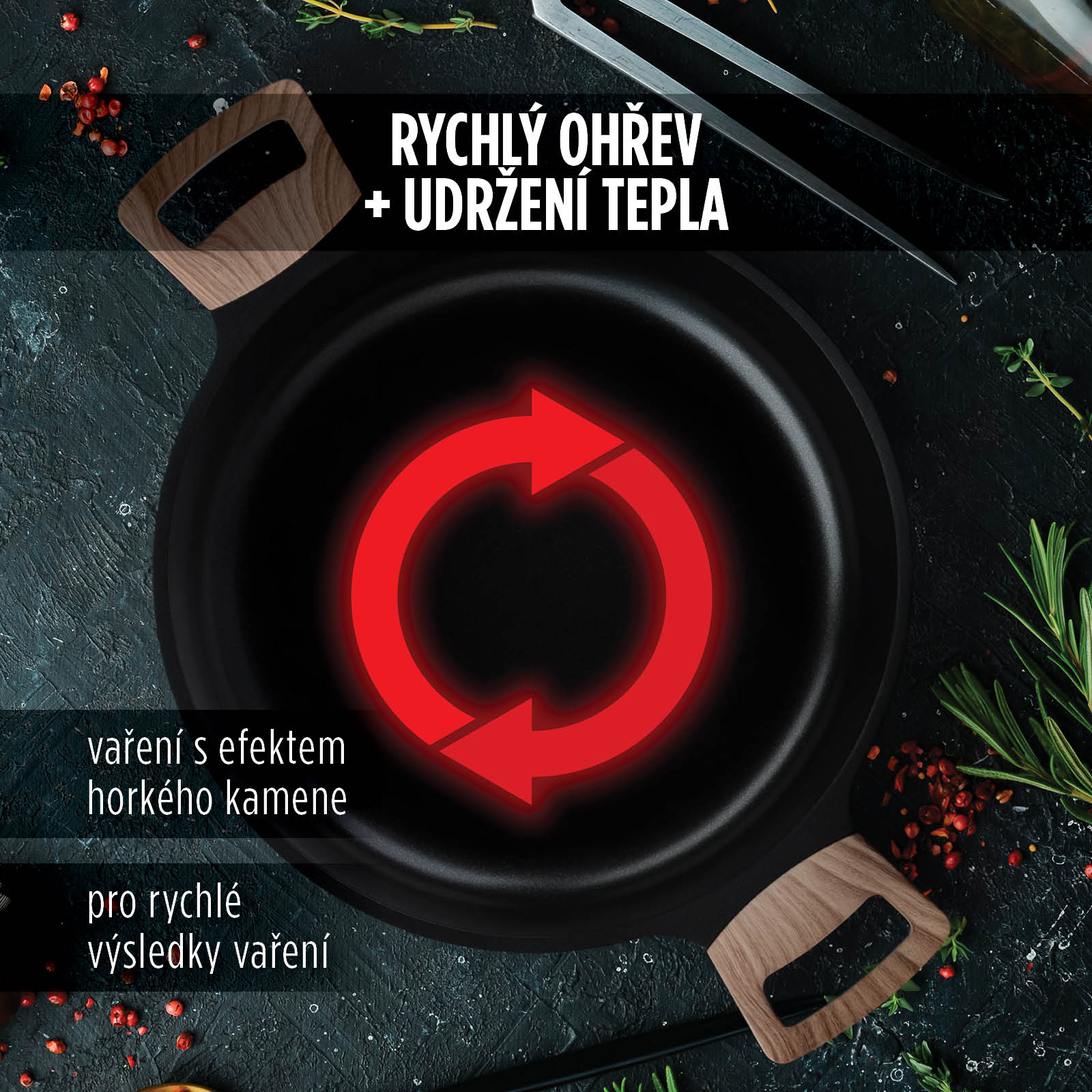 Moderní technologie vaření s efektem horkého kamene.