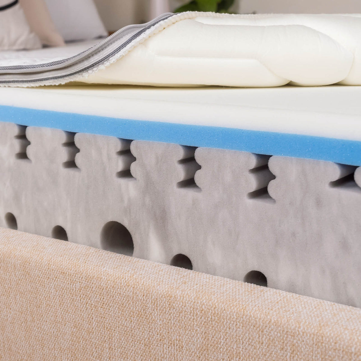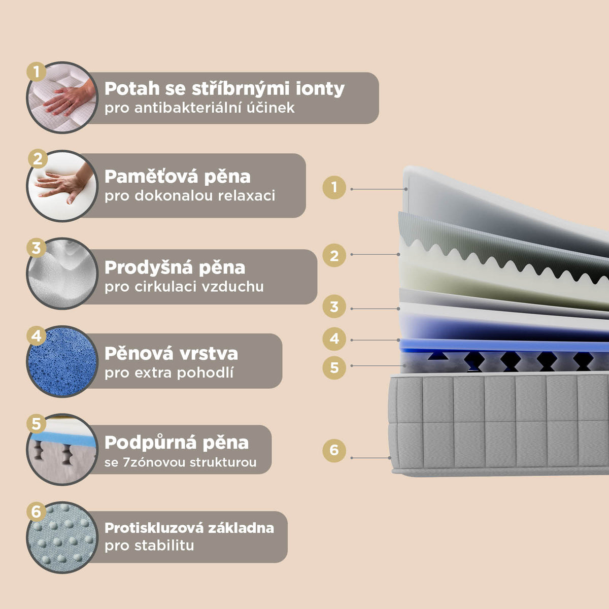 - Speciální prodyšná pěna umožňuje lepší proudění vzduchu pro svěží a suchý pocit během spánku.