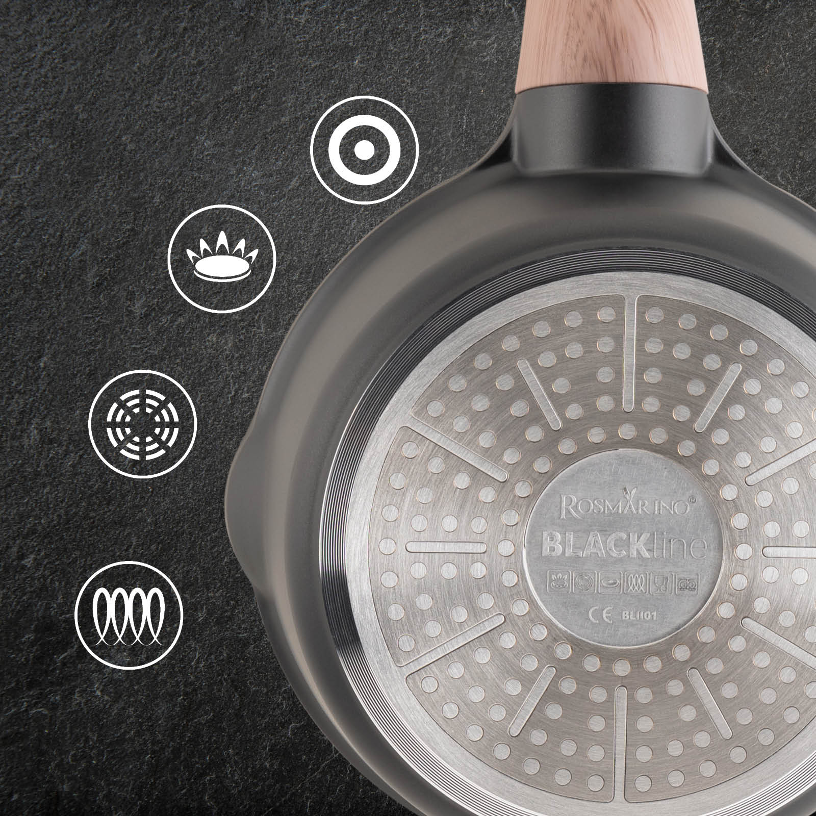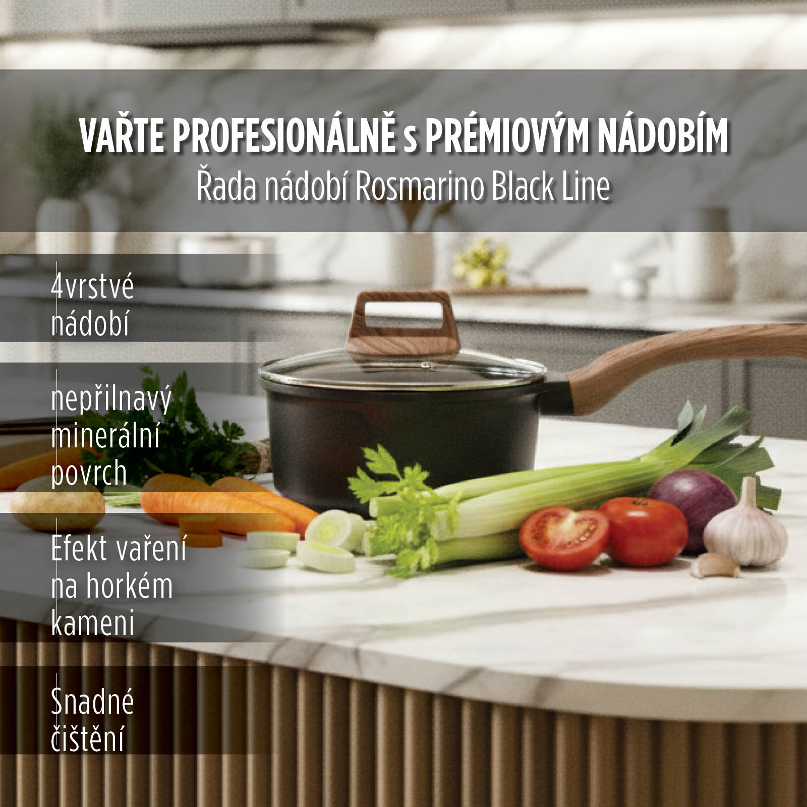 Rendlík s poklicí Black Line II o průměru 18 cm patří do prémiové řady s inovativním a technologicky propracovaným minerálním povrchem vyvinutým v Německu. Nepřilnavý minerální povrch umožňuje přirozené vaření a pečení s minimálním množstvím tuku. Pokrmy si tak zachovávají všechny vitaminy a minerály, které tělo potřebuje pro zdravý životní styl. Je vhodné pro všechny typy varných desek včetně indukce a snadno se čistí, protože jej lze mýt v myčce nádobí. Veškeré nádobí Black Line II je založeno na vícevrstvé konstrukci, která zaručuje dlouhou životnost, vysokou odolnost a trvanlivost.