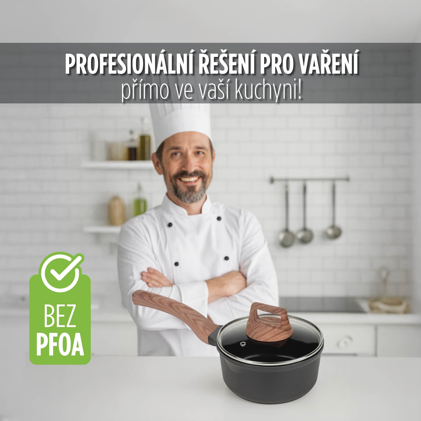 - Veškeré naše nádobí je navrženo podle nejvyšších standardů a neobsahuje škodlivou látku PFOA ani jiné škodlivé chemikálie.