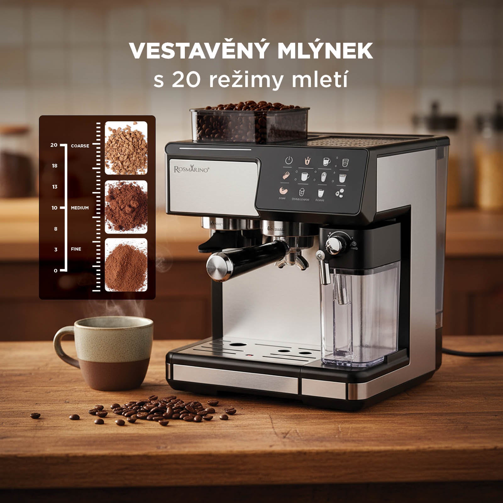 - Vestavěný mlýnek se 20 nastaveními pro dokonalou čerstvost každého šálku.