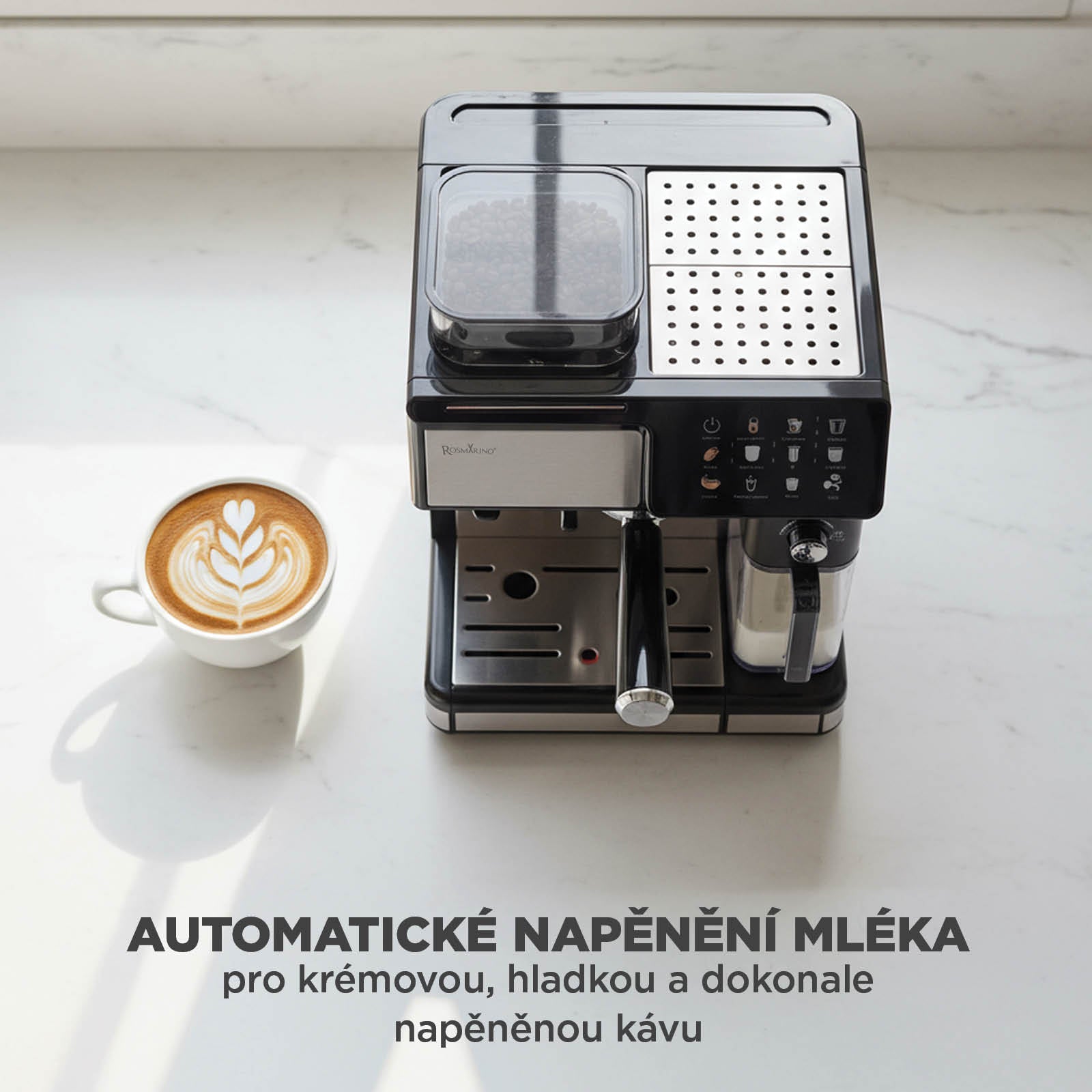 Rosmarino Barista vám umožní začít každý den trochu jinak. Espresso pro rychlé ráno, cappuccino pro chvíli rozmazlování, latte macchiato pro pomalé odpoledne nebo osvěžující ledová káva pro letní dny. Vyberte si nápoj, který odpovídá vaší náladě, a užijte si pocit, že máte svou osobní kavárnu přímo doma.