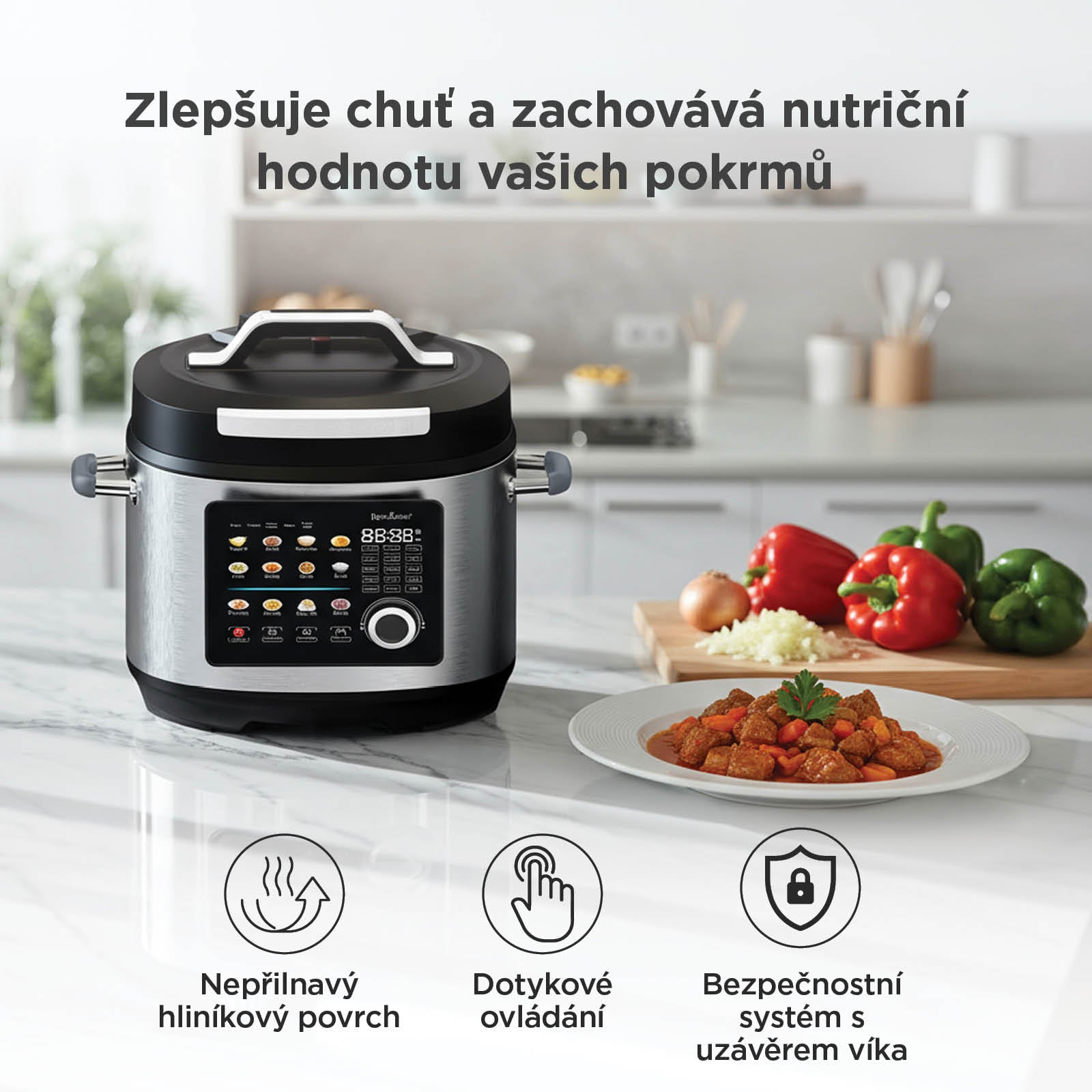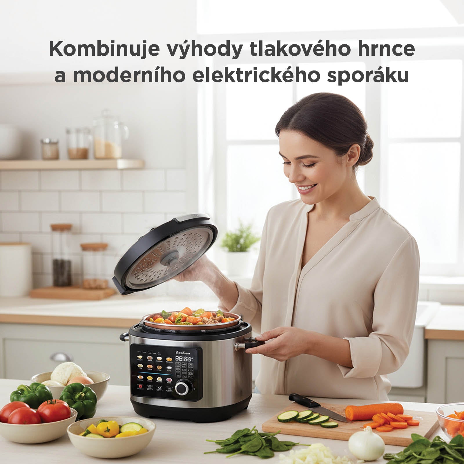- Kombinuje výhody tlakového hrnce a moderního elektrického vařiče.