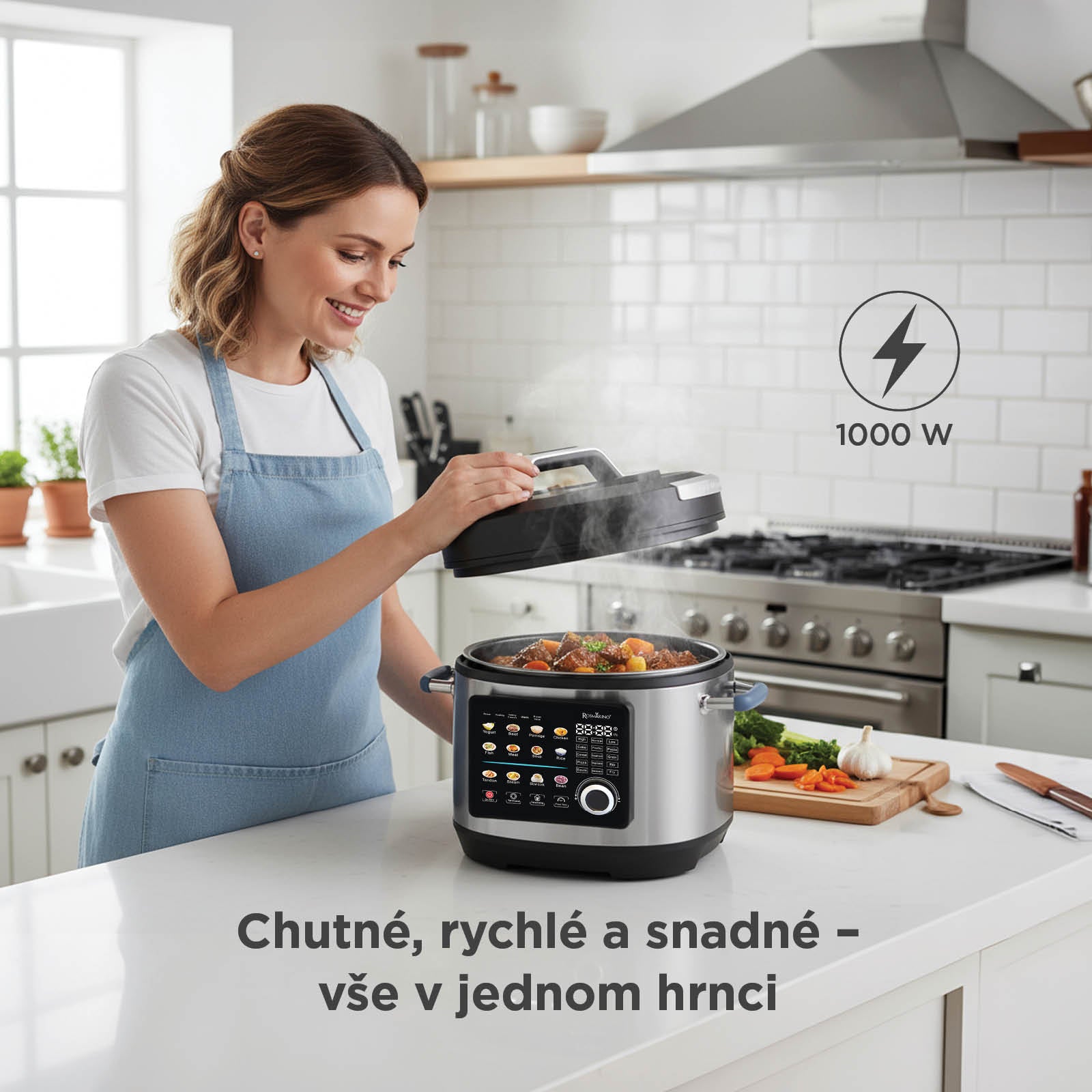 Někdy se zdá, že den má prostě příliš málo hodin. Elektrický tlakový hrnec Rosmarino vás zbaví stresu z neustálého spěchu – postará se o večeři, zatímco vy si můžete odpočinout. Spojuje teplo domácí kuchyně s pohodlím moderní technologie: stisknutím tlačítka se polévky stanou plné chuti, maso křehké a rýže dokonale uvařená. Žádné neustálé míchání, žádné obavy, že něco překypí. Pracuje tiše, bezpečně uvolňuje páru a pokaždé překvapí chutí domova. Není to jen hrnec – je to váš tichý pomocník, který vám vrací čas a klid.