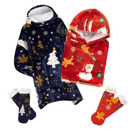 - Dárek: teplé ponožky s protiskluzovou ochranou ve stejném designu jako mikinová deka.