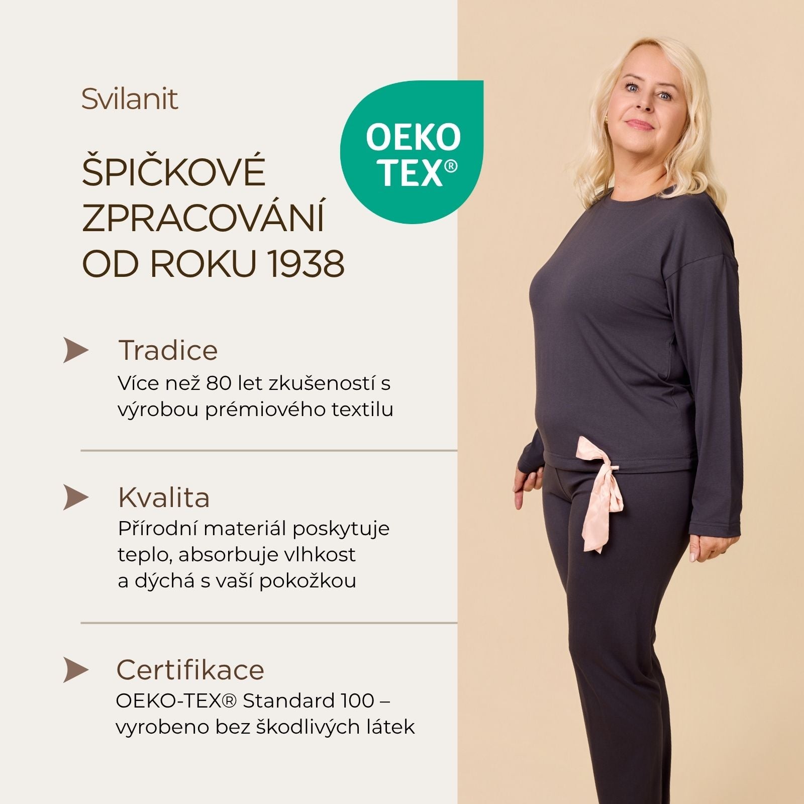 - Nejvyšší certifikát OEKO-TEX® Standard 100 – vyrobeno bez škodlivých látek, šetrné k pokožce