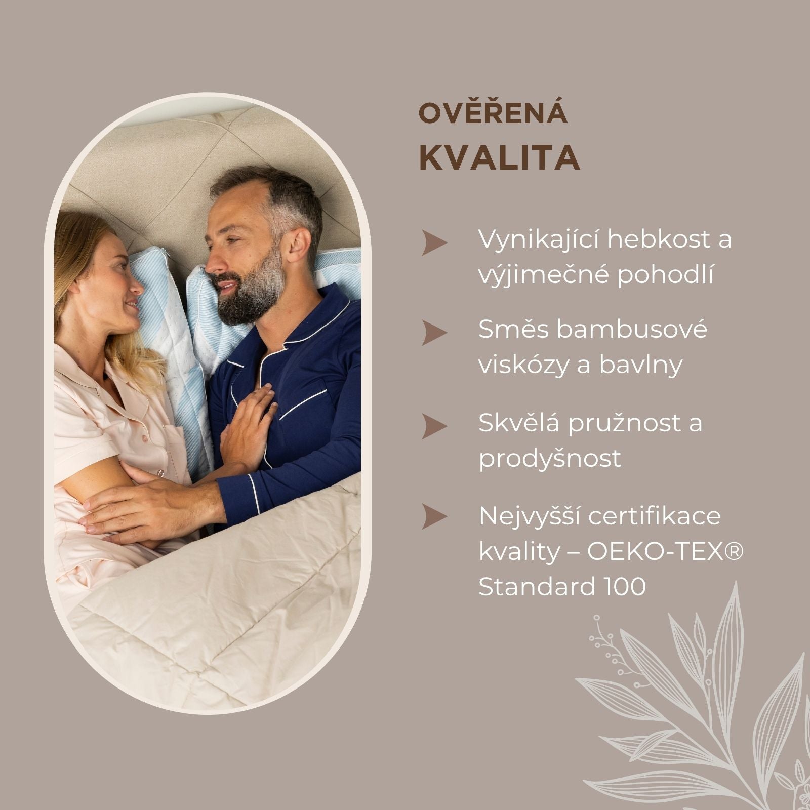 - Výjimečná lehkost a prodyšnost – bambusová vlákna regulují teplotu během spánku a dýchají s vaším tělem