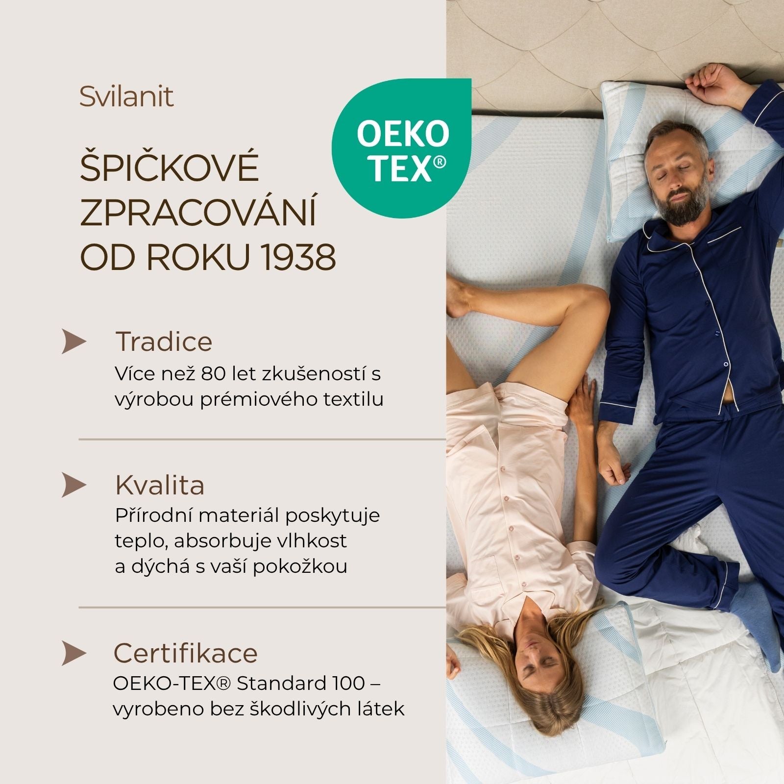 Dopřejte si luxus hebkosti a dokonalého pohodlí. Zažijte pravý pocit luxusu s mimořádně jemnou směsí přírodních materiálů nejvyšší kvality, která jemně obejme vaše tělo, poskytne skvělou prodyšnost a bude vás hýčkat noc co noc.