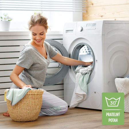 - Snímatelný potah lze prát na 30 °C, takže je vhodný pro osoby s citlivou a problematickou pokožkou, alergiky a astmatiky.