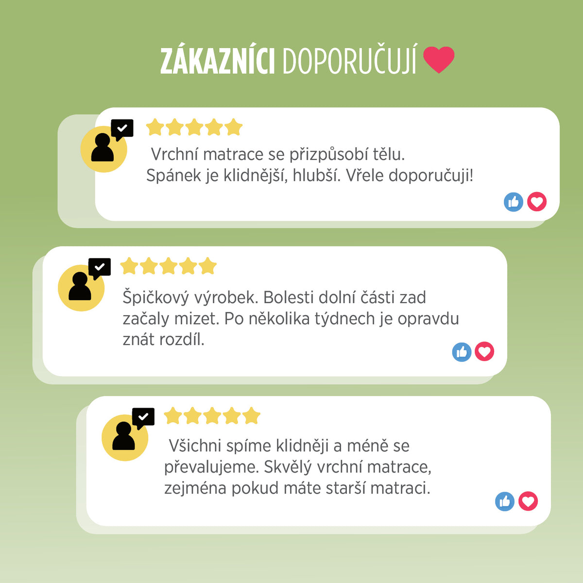 - Nejlepší řešení pro ty, kteří nechtějí vyměnit starou matraci, ale chtějí jen zlepšit její měkkost a pohodlí a prodloužit její životnost.